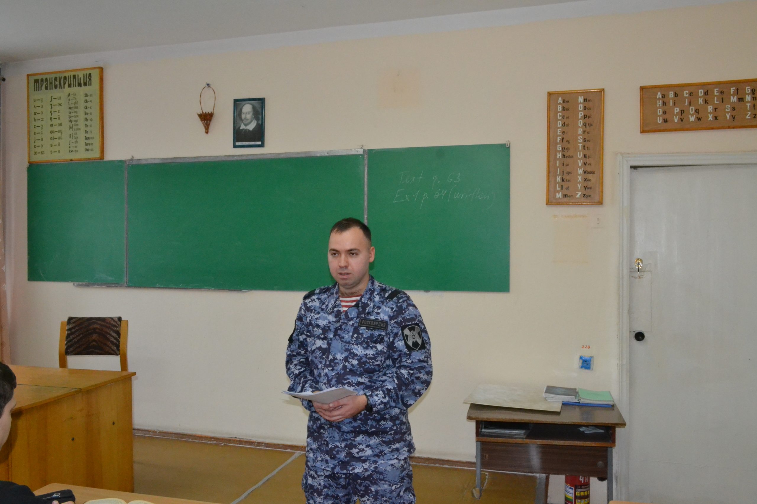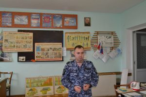 Также перед обучающимися выступил старший сержант полиции Симферопольского межрайоного отдела Вневедомственной охраны Росгвардии по Республике Крым Степанов Владимир Александрович, который рассказал о преимуществах службы в Росгвардии.